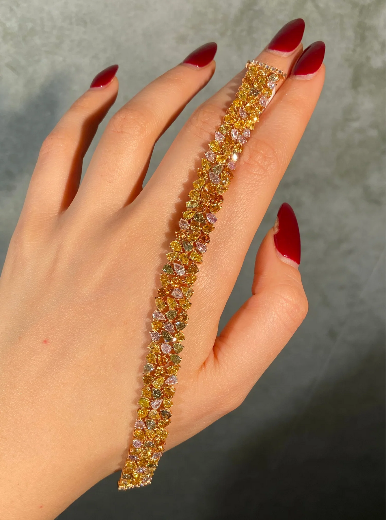 16 Carat Mixed Fancy Color Diamond Three Row Bracelet