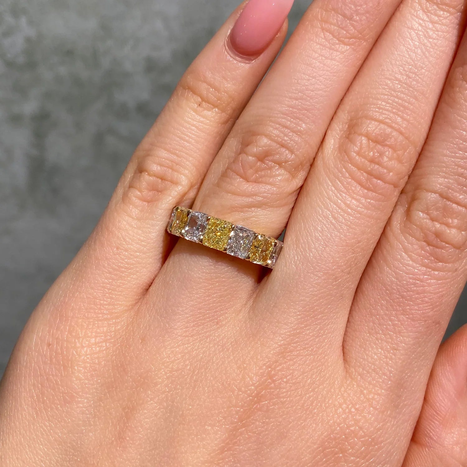 4.34ct Elongated Radiant Alternating Halfway Band GIA