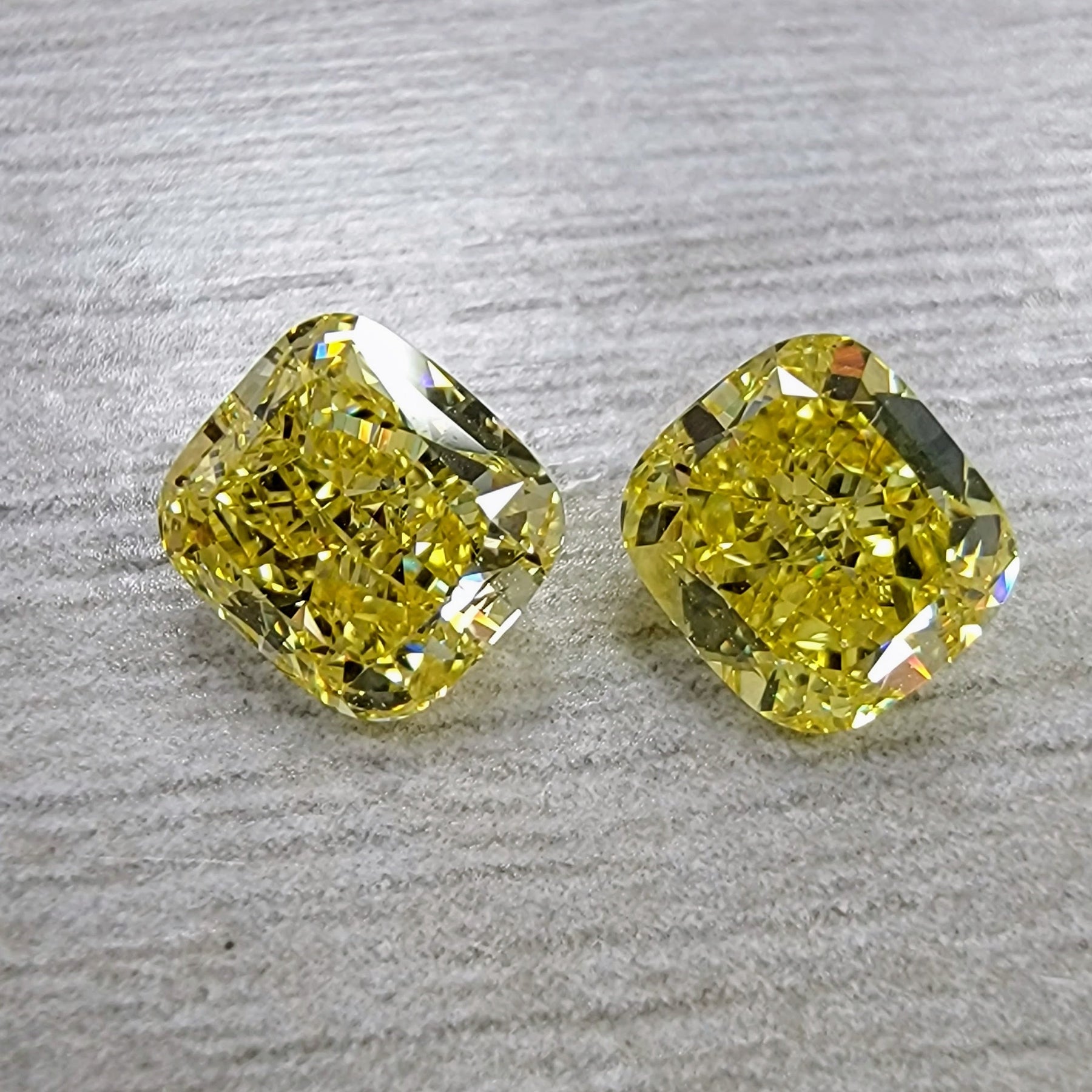 1.02ct & 1.02ct Fancy Vivid Yellow Cushions GIA