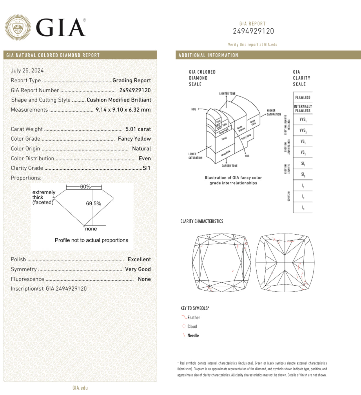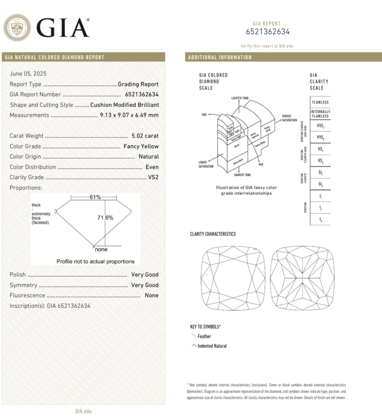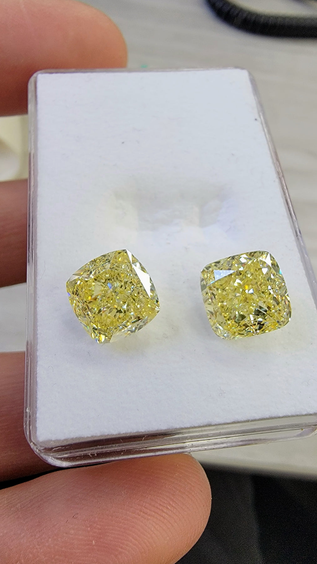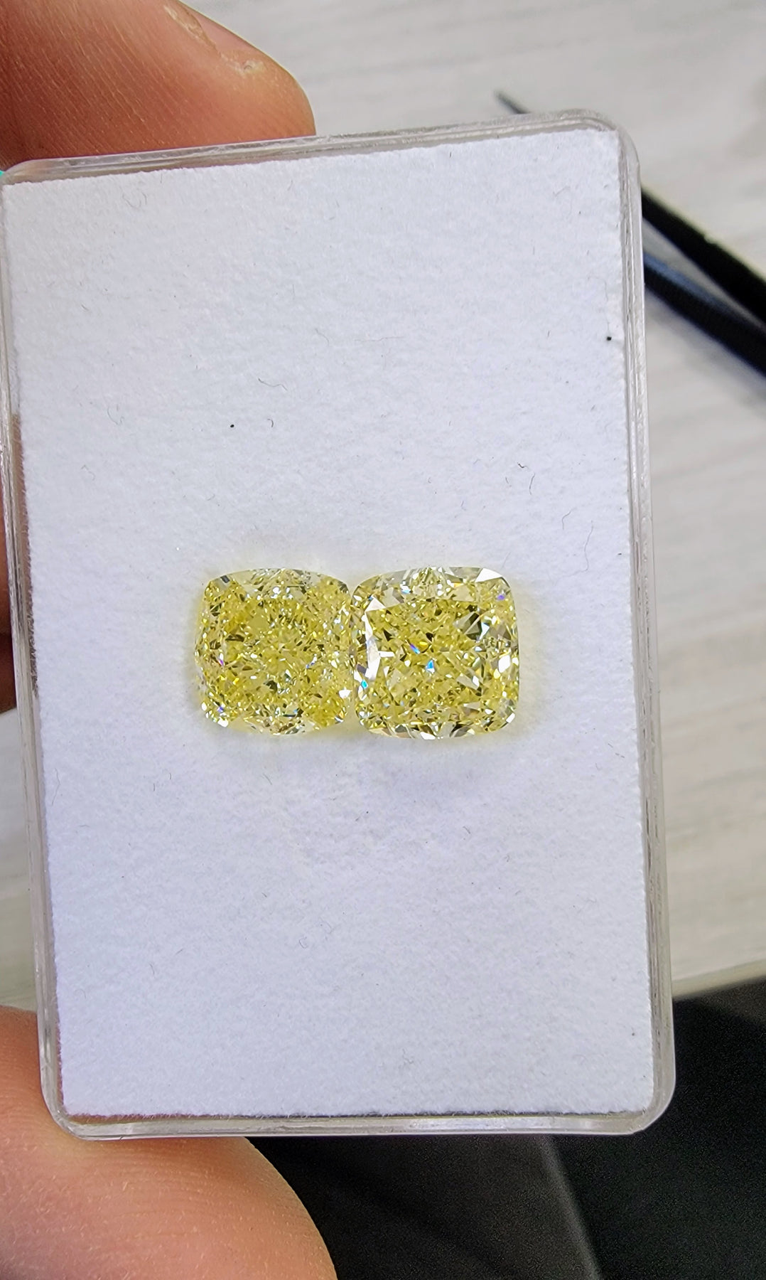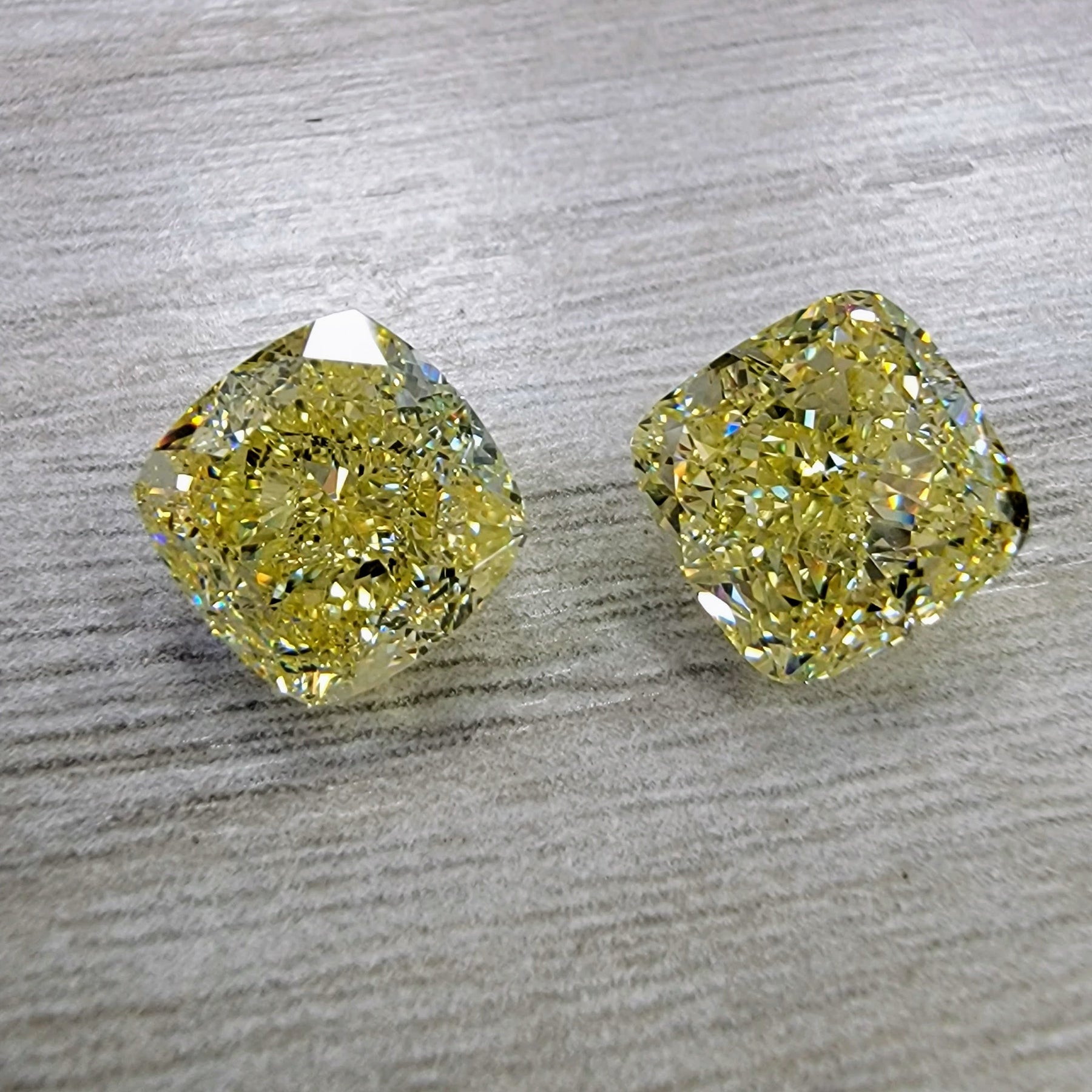 5.01ct & 5.02ct Fancy Yellow Cushions GIA