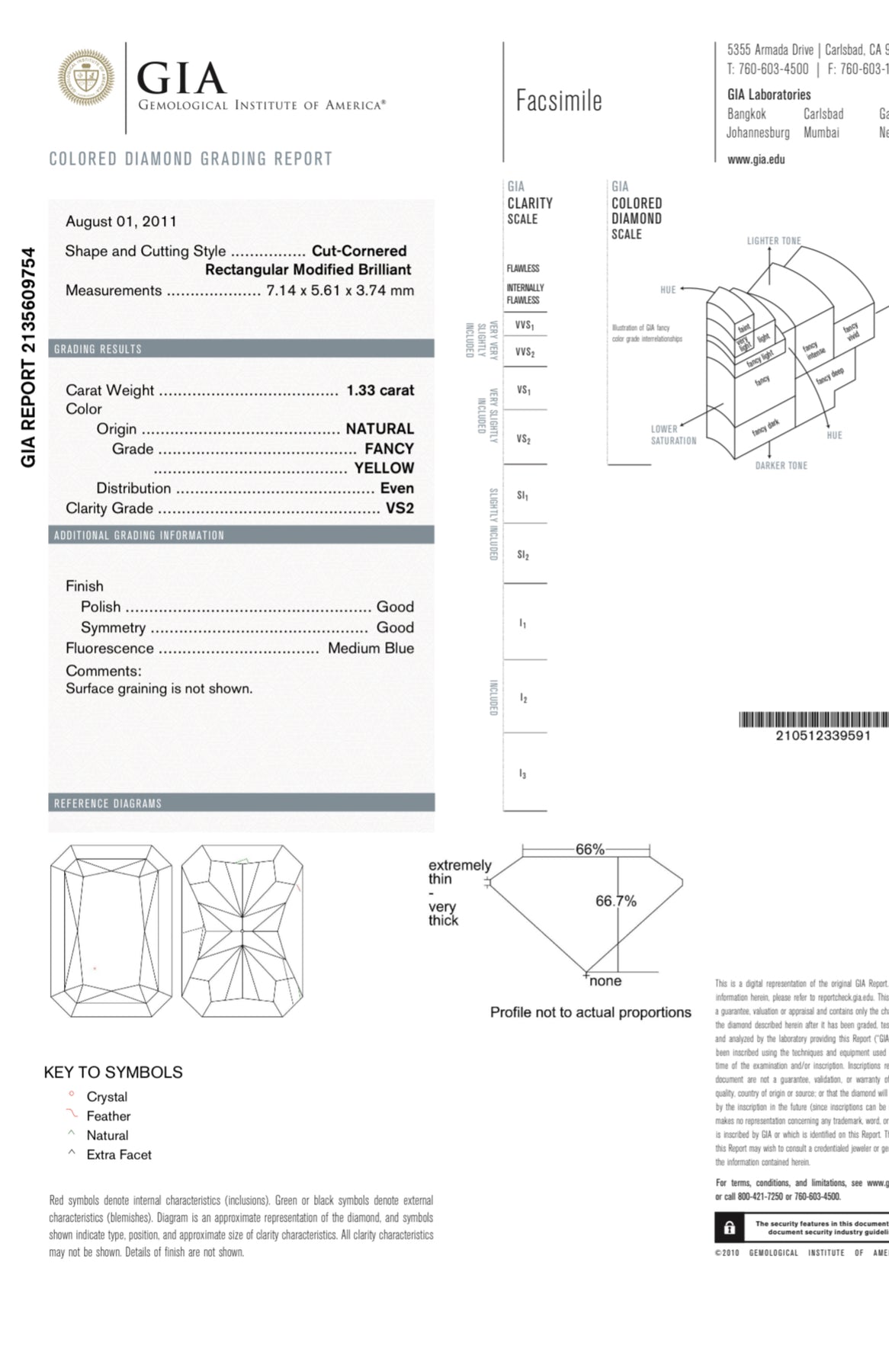 1.33ct Fancy Yellow Elongated Radiant VS2 GIA