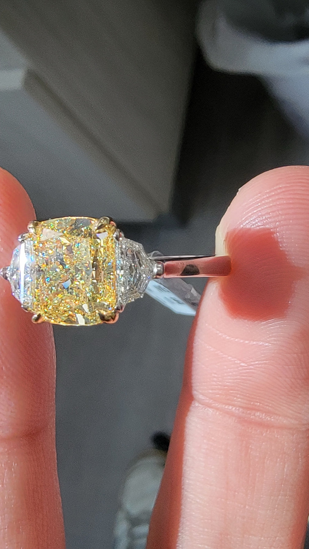 3.00ct Fancy Yellow Cushion VVS1 GIA Ring